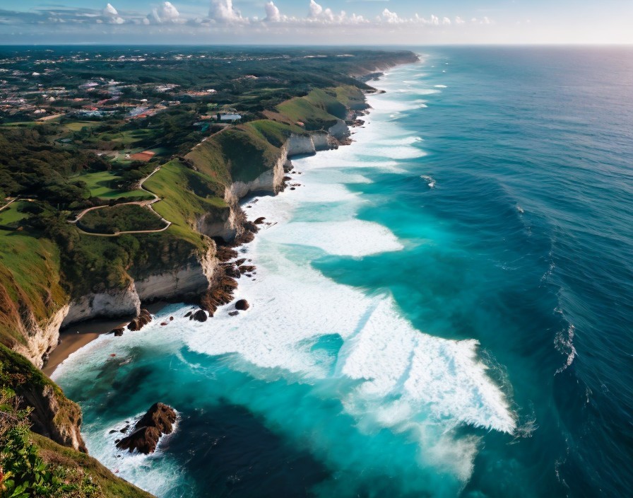 Rugged Coastal Cliffs and Beaches Along Turquoise Sea