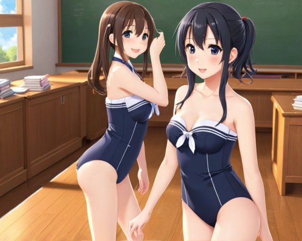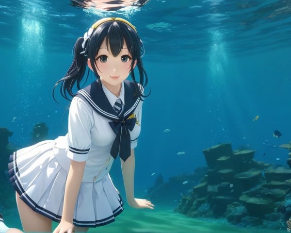 A charming anime girl dons a vibrant round swimsuit, showcasing her playful personality. Her bright eyes and cheerful smile radiate joy, embodying the essence of summer fun and carefree adventures.