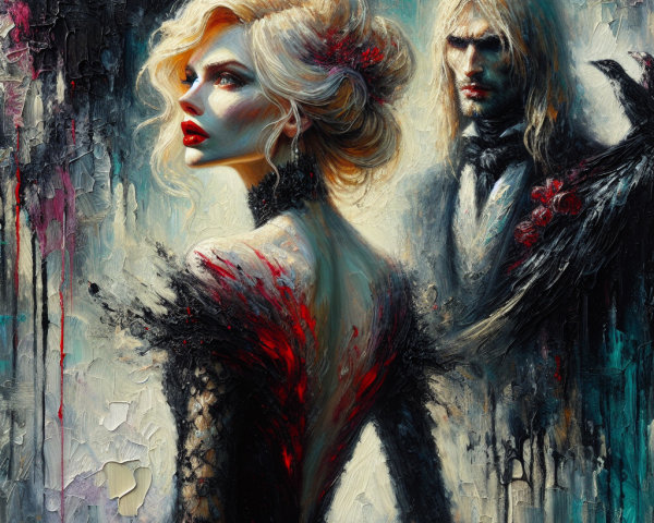 This striking ink wash artwork features a dynamic girl with fluffy hair against a smooth stone wall. Vibrant turquoise accents and ornate star designs create a dramatic, textured scene.
