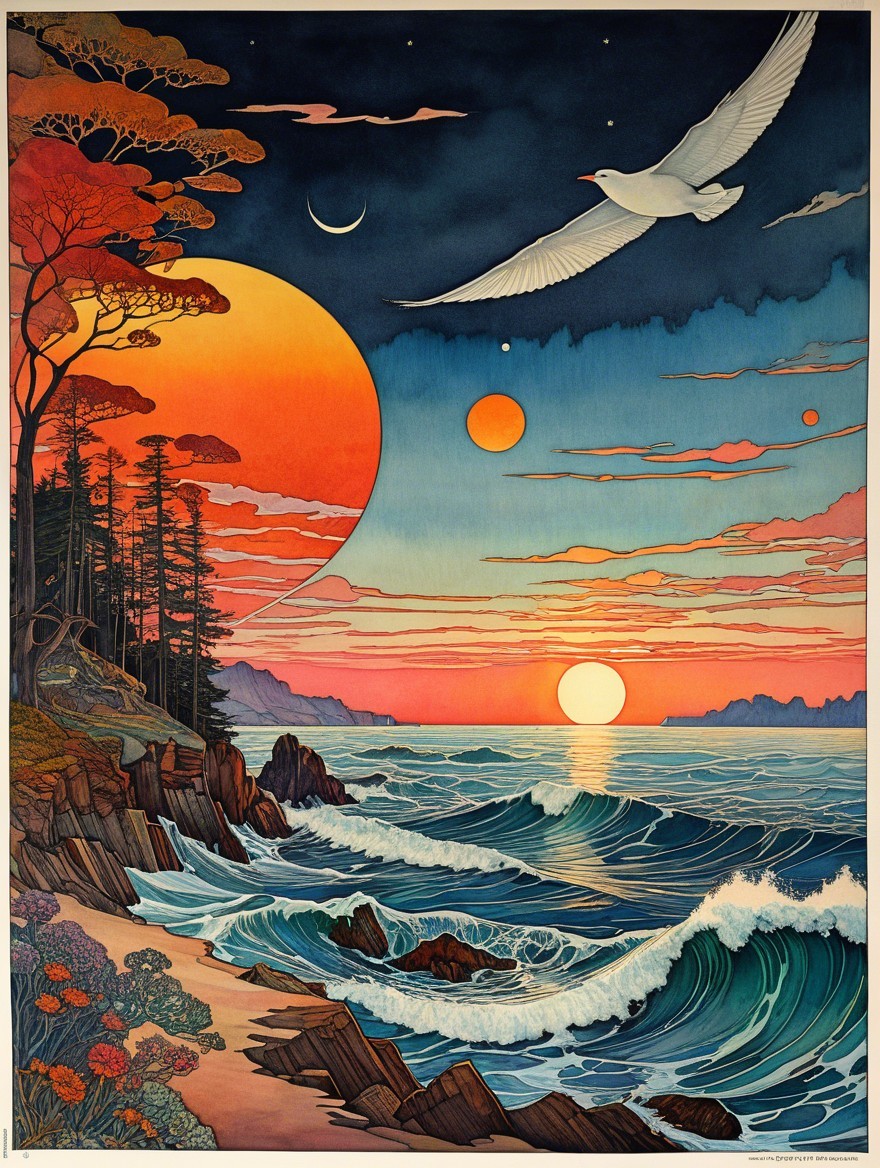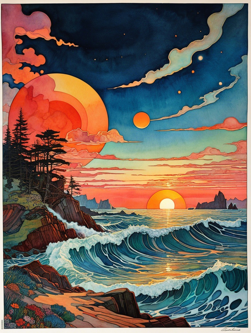 Vibrant Sunset Over Serene Coastal Landscape