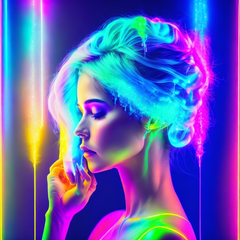 Futuristic Woman with Neon Makeup and Lights
