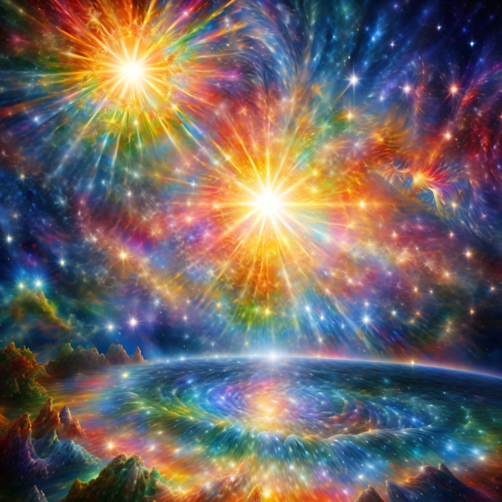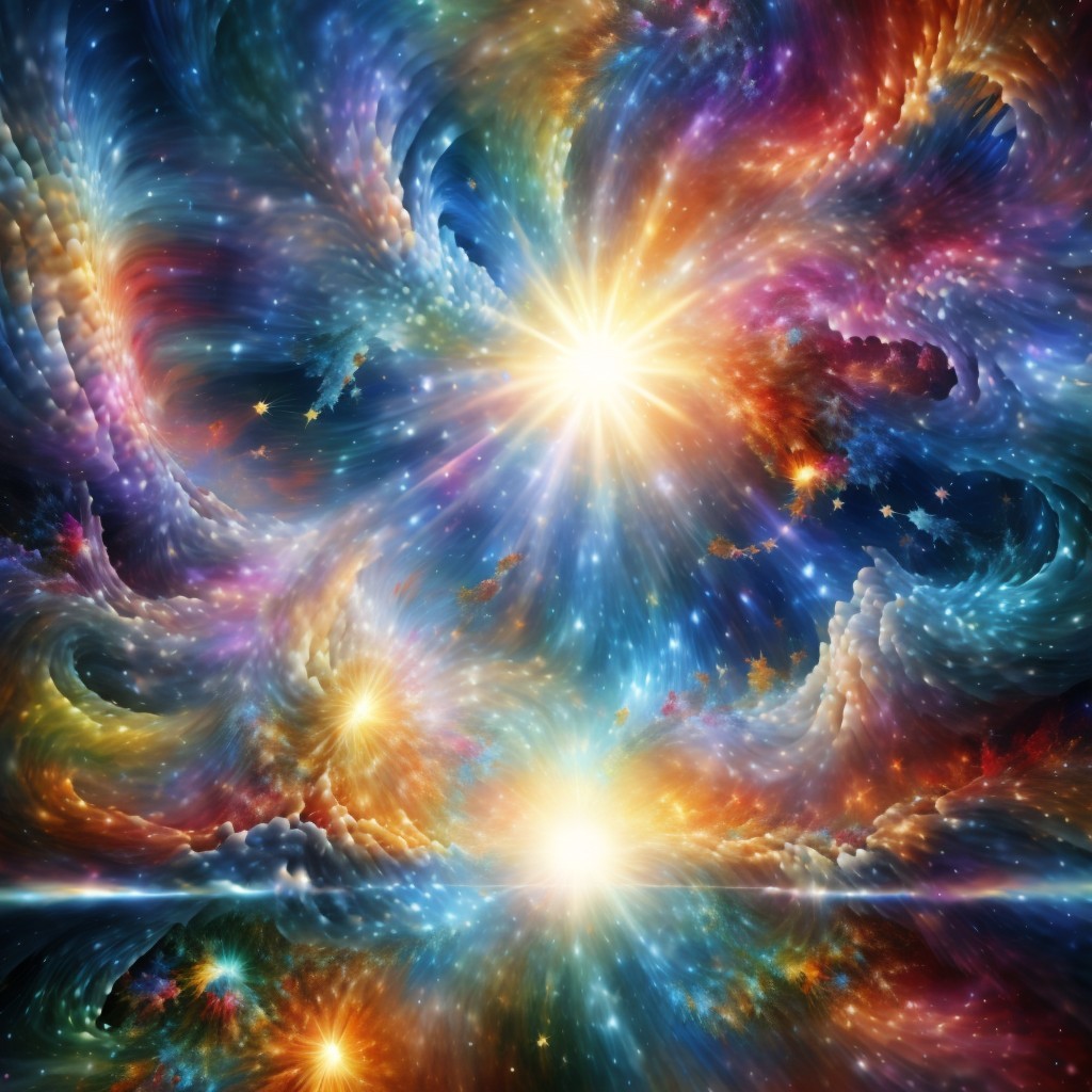 Vibrant Cosmic Scene with Colorful Stars and Waves