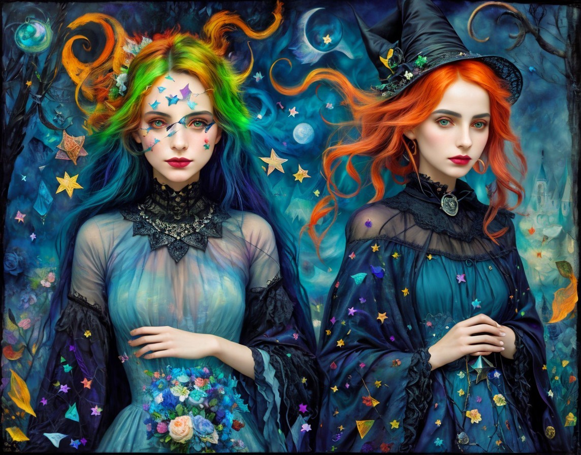 Witches live in the realm between magic and insanity, beautiful witches. abstract-surreal-impressionism. Mysterious characters from a mysterious world. poetic collage. what we want is anarchism. playing with typography, patterns of letters. dynamic composition. special texture, printing defects, old paper.