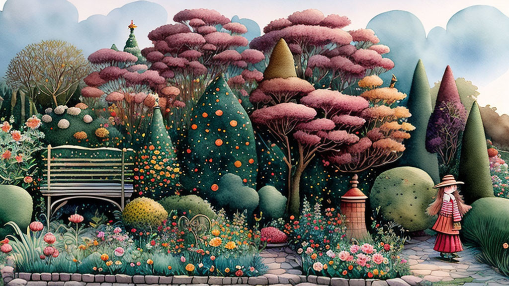 Anton Pieck, Otto Riet, Hugo Pratt,, clouds, watercolor, ink. A fairy lady and a gnome.storybook illustration By Richard Scarry, Holly Hobbie and Quentin Blake