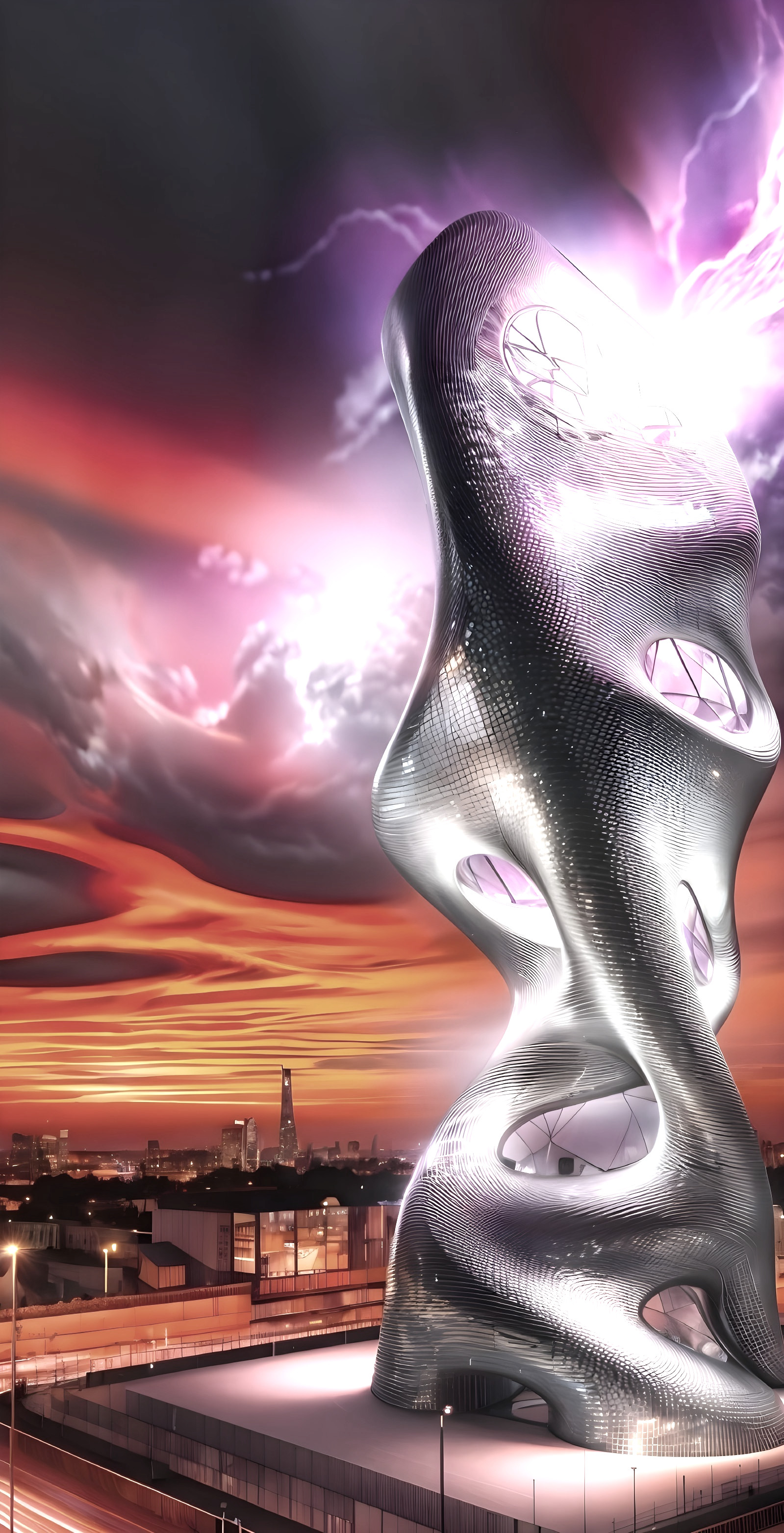 Sky High + Leaning Dancing Buttresses 25 09 18 SK:14 Futuristic Towers at Sunset Art Meets Design