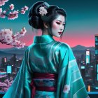 This surreal artwork features ethereal, elongated figures with serene expressions, surrounded by fantastical landscapes and celestial elements. Vibrant colors meld with dreamlike imagery, creating a mystical atmosphere.