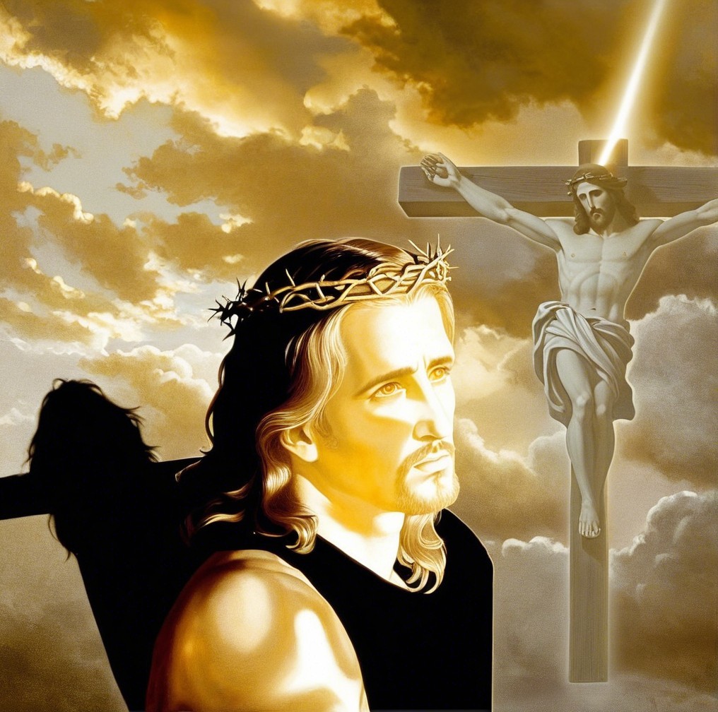 The "shadow of Jesus" can be interpreted both literally and metaphorically. Literally, if a light source shone on Jesus, his shadow would simply be his physical form projected on a surface,-