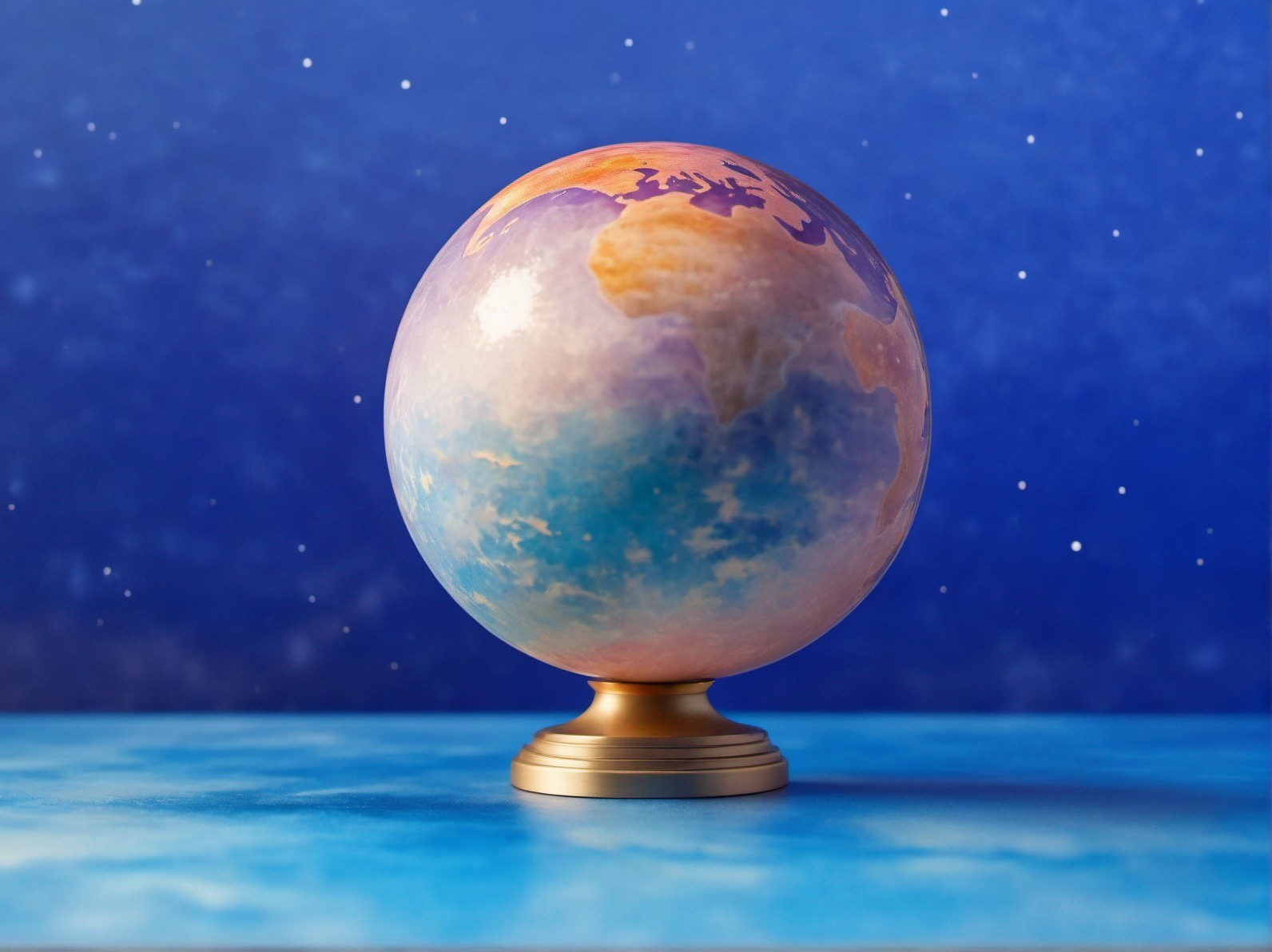 Realistic globe on stand against starry blue background