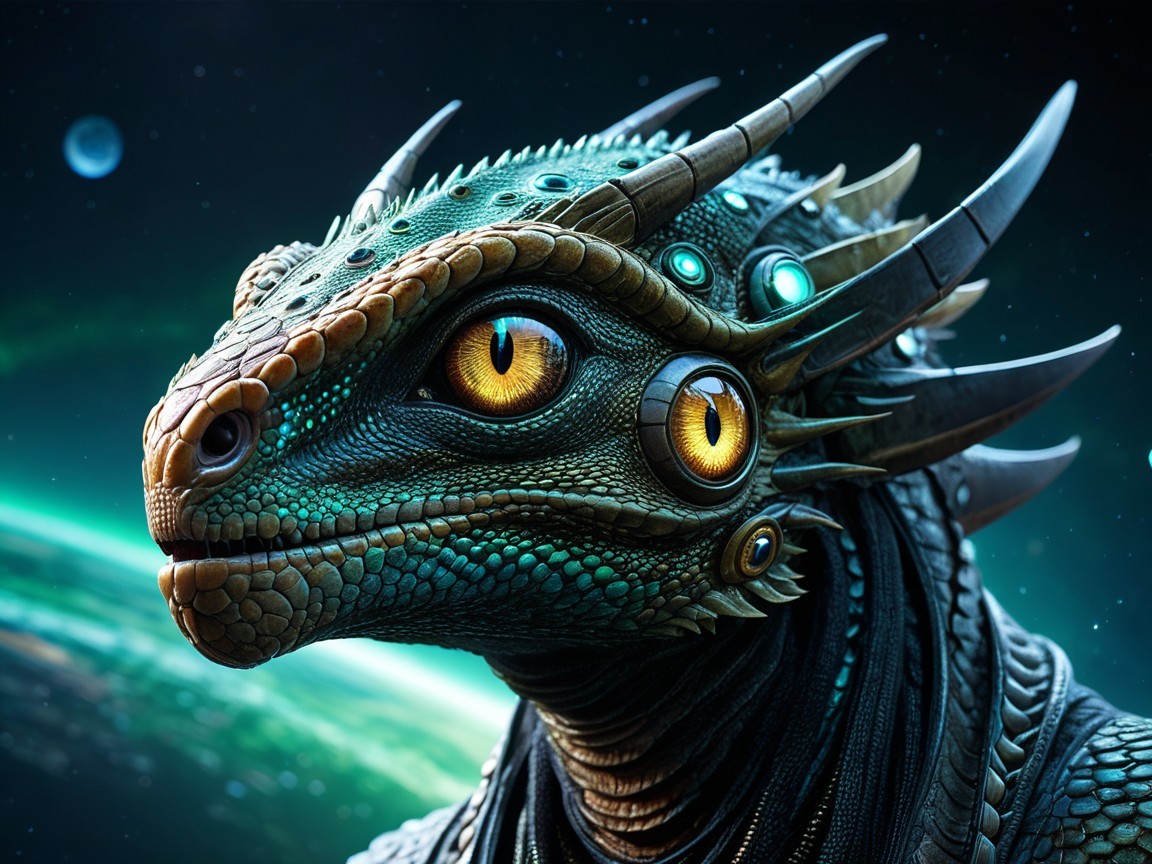 Futuristic Reptilian Creature with Mechanical Enhancements