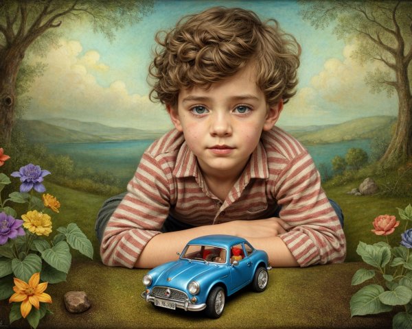 A vibrant, surreal illustration featuring a large, colorful cat with captivating eyes above a mystical woman surrounded by swirling patterns, butterflies, and celestial elements, evoking a dreamlike atmosphere.
