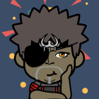 A digital illustration of a confident character with curly hair, pointed ears, and bright yellow eyes. Set against a cosmic background, they wear a futuristic outfit with a bold design.