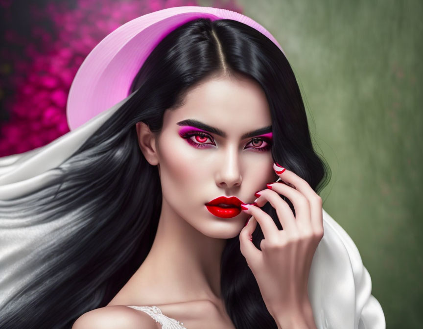 Monochrome temptation, fascinating young woman with an intense gaze of seduction, perfect hands, mysterious beauty, sensual and attractive, base is monochrome black and white, white skin, long flowing hair, softly pink lips, pale green eyes, dark-red black bra, ink and wash, highly detailed, elegant, very attractive, beautiful, high definition