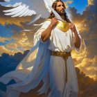Mystic Jesus create an image using the language of symbolism an image of Jesus's Connection to the Celestial and Divine: The wings symbolize a connection to the divine realm, showing Jesus's place among celestial beings. He is depicted with wings to represent his eternal nature as the "Logos" or "Word of God," and his heavenly existence.