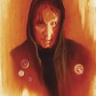 Fierce anthropomorphic cat in vibrant flames and bold style