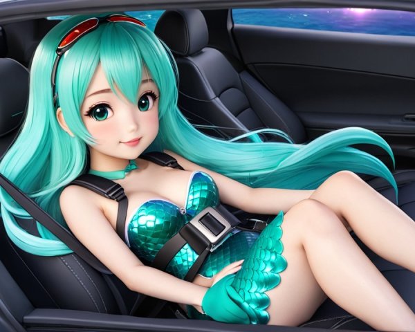 A girl dons intricate heavy armor while submerged in water, showcasing a unique fusion of anime aesthetics and Minecraft-inspired blocky designs, creating a striking visual contrast in her surroundings.
