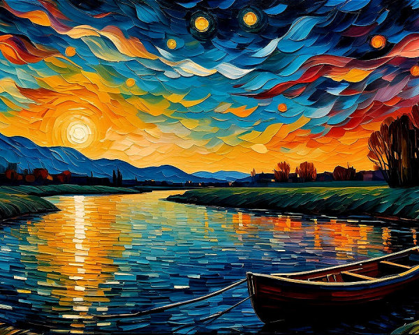 A vibrant, colorful scene of two tigers amidst lush greenery and tropical plants, set against a bright sun and swirling clouds, capturing the beauty of wildlife in a bold, artistic style.
