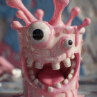 Cartoonish Pink Cup with Blue Eyes and Grinning Face