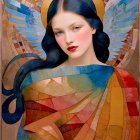 Colorful Winged Figure in Elegant Gown with Gemstones