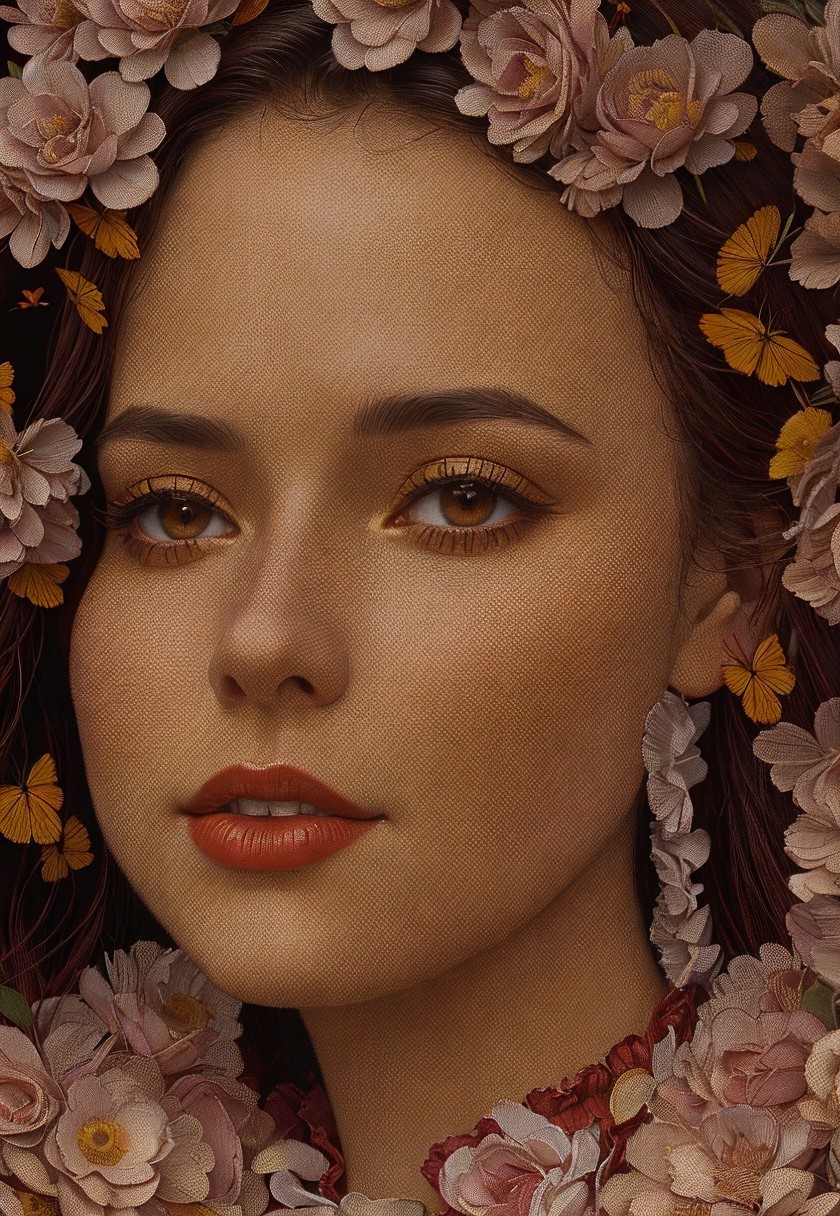 Renaissance painting,  oil on canvas, varnish, Handsome french girly with detailed frilly blouse, headshot, triadic color scheme yellow ochre amber, 3d effects1.8, blur, style by Geof Darrow, John William Waterhouse, Ivan Bilibin, Grant Wood, Jeremy Mann, Howard David Johnson, Margaret Keane, misty atmosphere, floracore 1.2,  fairycore 1.9, stacked-up perspective, blurry edges,  brightness 1.4, chibli 0.7, embossed strokes 1.2, synthetic essence, intricately patterned, pale skin, realistic devilish eyes, dynamic lighting 1.7, watery paint details, high coloring, sift rounded edges, detailed textures in triadic color scheme red beige orange, plasticity 1.7, muted colors, stylized in style of Margaret Keane and Marsden Hartley, intricate skin texture, watery alcoholic painture and ink, dots and flares and splashes, delicate coloring 1.9, bokeh effects, soft edges, back-lit, dynamic orange lighting, style of Overton Loyd, wet on wet painting, hues, gothic futurism, chiaroscuro lighting, ambient occlusion 1.5, shadow mapping 1.3, 3d effects 1.2, intricate stylized hairstyle, brightness 1.7, fine lines, abstract, coherent, hues, dystopian dethereal, occult, retropunk, sweaty vibrant, eerie, anglogothic 1.3, auracore, high coloring 1.9, cottagegore 1.9, retrofuturistic details of ornate, maximalism, radiance, brightness 1.4, blurry,, dynamic lighting 1.7, ambient occlusion 1.5, anisotropic filtering 1.9, raytraced shadows, ethereal, otherworldly, abstract style 1.7, dethereal, grain, blurry aura, synthetic essence, saturated colors 1.5, limited pallet, shadows, dark fantasy art, octane render illustration 1.5, beautiful composition 1.9, coffinwood 1.7, american gothic 1.7, intricate details, vibrant luminous pointillism, embossed strokes, inkpunk 1.8, beautiful composition 1.9,