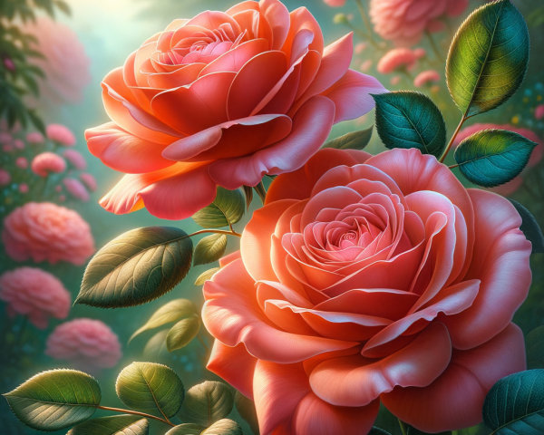 A vibrant tropical scene featuring lush green palm fronds and colorful foliage, with a path winding through the dense vegetation, illuminated by soft sunlight filtering through the trees.