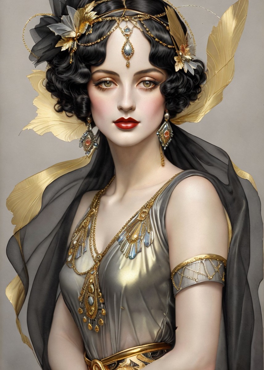 Art Deco Woman with Porcelain Skin and Golden Halo