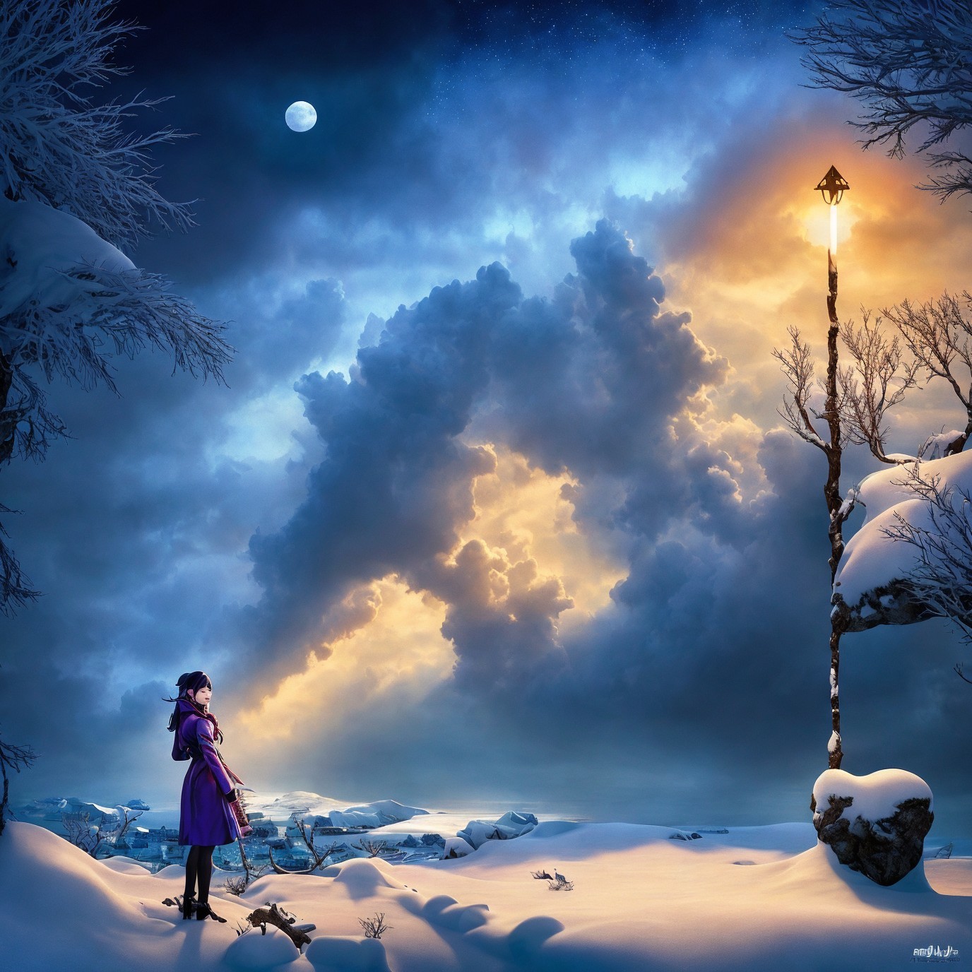 + Prompt:A sideway by the sea in the city, frost, thick snow, white landscape. surreal, twilight, sharp focus fantasy imperial colors fantastic view highly-detailed digital painting Award winning photography fantasy very attractive beautiful dynamic lighting fantastic view high definition quality colourful focused fit the subject within the picture frame no asymmetries or deformities, sharp focus ethereal quality colourful magical dreamy sharp focus Zoom out subtle bokeh effects Perfect imagery of a beautiful child walking perfect imagery of street lamps thick snow,