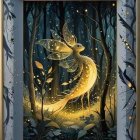 This artwork features vibrant orange lilies set against a dramatic backdrop of dark mountains. Delicate blossoms and foliage surround the central flowers, highlighting a harmonious blend of nature and artistry.