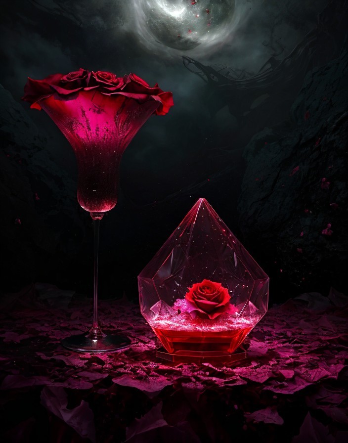 Prompt: "Otherworldly and enchanting decaying red viscerocranium fused with rose that is made from translucent human skin, Beautiful Bizarre Art ensnares our senses and lets us travel into the depths of her mesmerizing horrors: by Jon MacNair in style of Gross_horror_terroR_L0Wbr0W billow_wave_clouds-Simulation pattern by artist Michael Hussar infused with art from from Flora Borsi_The Codex Seraphinianus :: A red albino viscerocranium death human face bones fused with spider face and with a face of bio-surreal horror SCORN_GAME art (anthropomorphic_amoeba_femme_fatale)_MandaRhino, with white and black heterochromia blind eyes, thick spine like tentacle hair, near anthropomorphic! near photorealistic!, nymphaea!, Electron photography, RAY TRACING, 3 point lighting, best ambient occlusion settings, SCORN Femme fatale, by Trevor Brown inspired by nicoletta ceccoli"