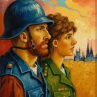 Futuristic Cityscape with Neon-Lit Figures and Skyscrapers