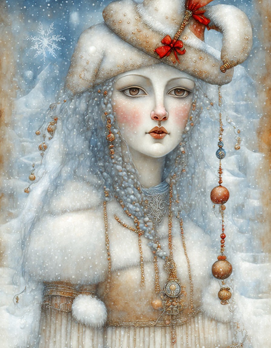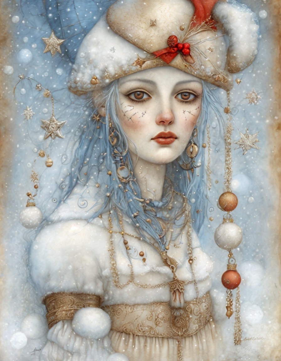 By Jamie Heiden, Daniel Merriam, Paul Klee, Karol Bak, Salvador Dali, extremely detailed, high definition, crisp quality, ultra detailed background Christmas ice maiden