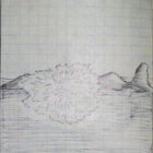 A serene landscape sketch depicts mountains partially shrouded in soft clouds, with a faint sun illuminating the scene. The background features a subtle gradient, enhancing the tranquil atmosphere.