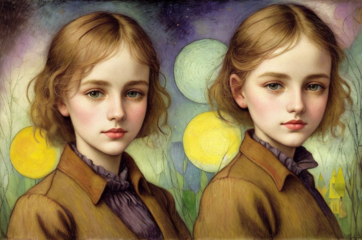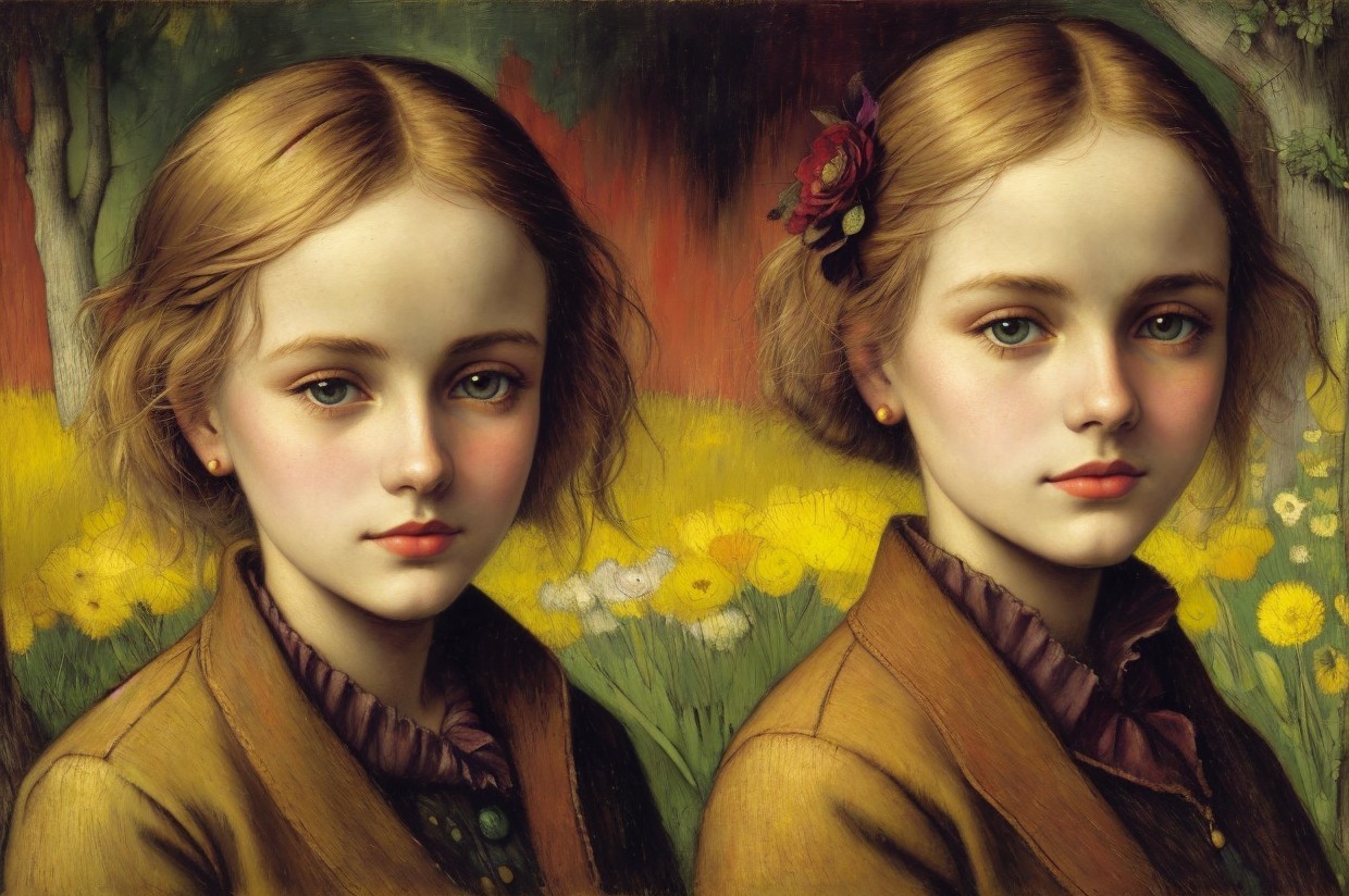 Two girls on an ochre background, try-it from Molly Johnston