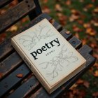 A poetry book rests on a wooden bench, surrounded by vibrant autumn leaves. The cover features simple floral illustrations, blending beautifully with the seasonal theme.