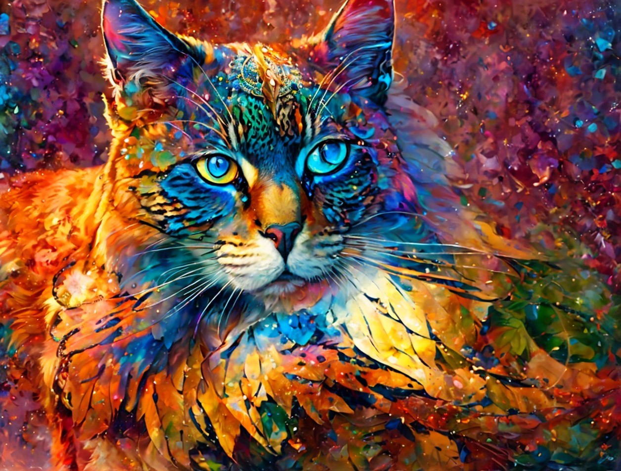 Prompt: 151515:["Waves of Spirited Cat: The Dance of Vibrant Solitude" {painting by Hundertwasser, detailed pattern with mixed brush strokes size; Fine-line detail; a masterpiece; trending on artstation; maximalist; highly detailed and intricate}]{hi-res, photorealistic, Nikon Z9, 85mm F1.2, DOF, smooth and realistic HDR}