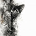 A captivating artwork featuring a close-up of a cat's eye, surrounded by a blend of dark and light abstract watercolor textures, evoking a mysterious and ethereal atmosphere.