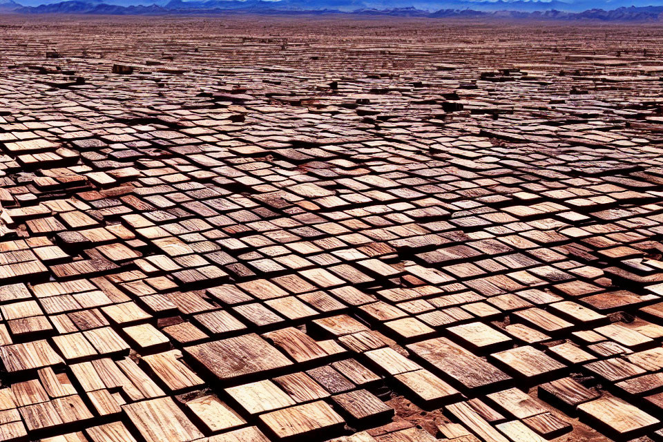 Cluster of makeshift houses with corrugated metal roofs in hilly area.