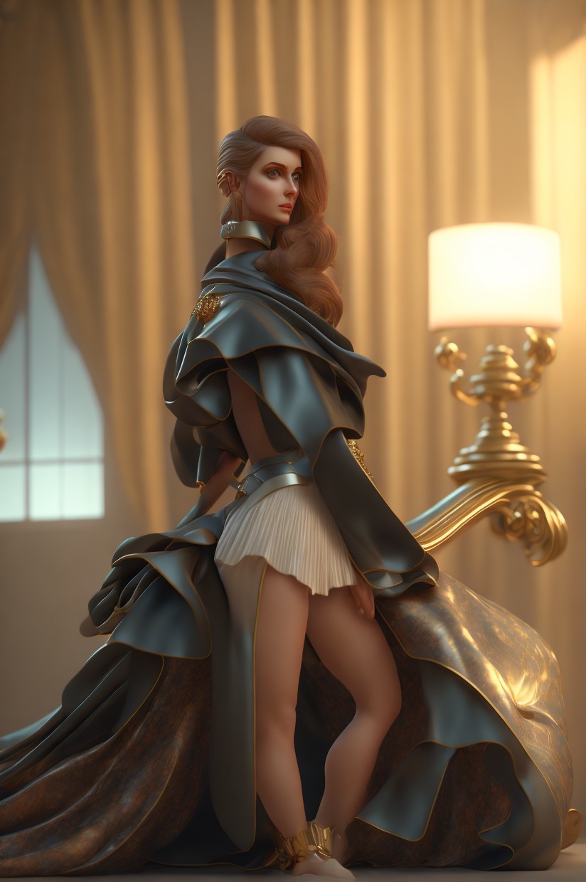 3D Rendering of Woman in Teal Cape and White Dress