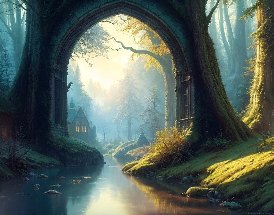 An enchanting fantasy forest village