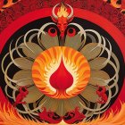 An intricate eye design reveals a vibrant cosmic scene, featuring a ship sailing towards a sunset amidst swirling galaxies and planets, blending colors of orange, blue, and gold.