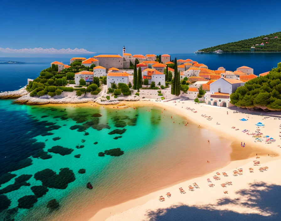 Scenic Coastal Village with Autumn Trees and Turquoise Waters
