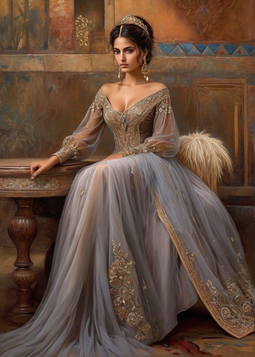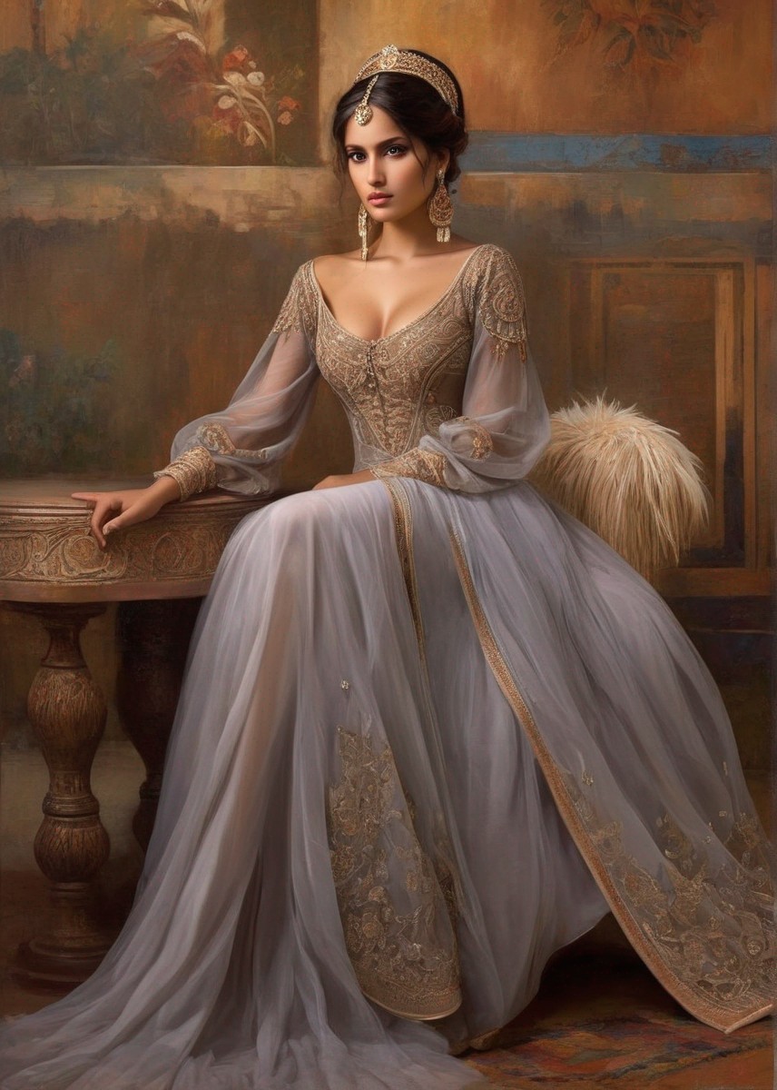 + Prompt:Exquisite woman of Romani descent adorned with captivating, large brown eyes. The ambiance is characterized by dimmed illumination and a subdued color scheme. The artwork is elegant, intricate, and highly appealing, having received prestigious accolades. The perspective offers a breathtaking panorama, rendered with hyperrealistic precision and remarkable attention to detail in high definition. The backdrop, executed in a matte finish, exudes a watercolor-like quality reminiscent of the artistic styles of Arthur Rackham, Gustav Klimt, pen and ink techniques akin to Johannes Vermeer, and the distinctive aesthetics of Aubrey Beardsley.