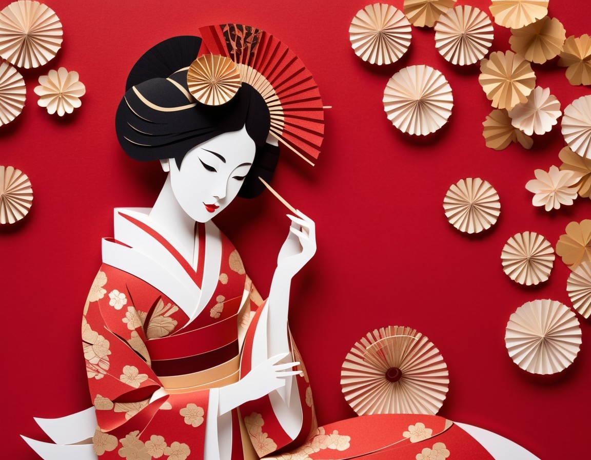 Kirigami craft paper Illustration of a Japanese Geisha