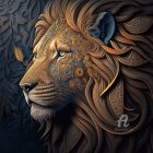 The artwork features a stylized female face adorned with vibrant flowers and leaves, incorporating rich colors and geometric shapes. The mix of metallic and matte textures creates depth and intrigue.