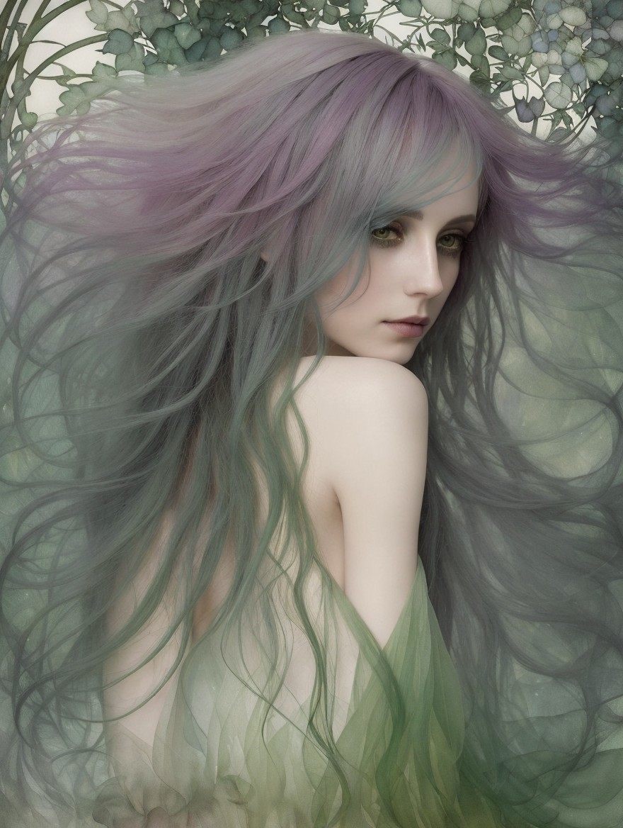 The image features three elegantly dressed figures in ethereal attire. Two women wear flowing gowns, one holding a candle, while a man in a dark outfit stands beside them, creating a mystical ambiance.