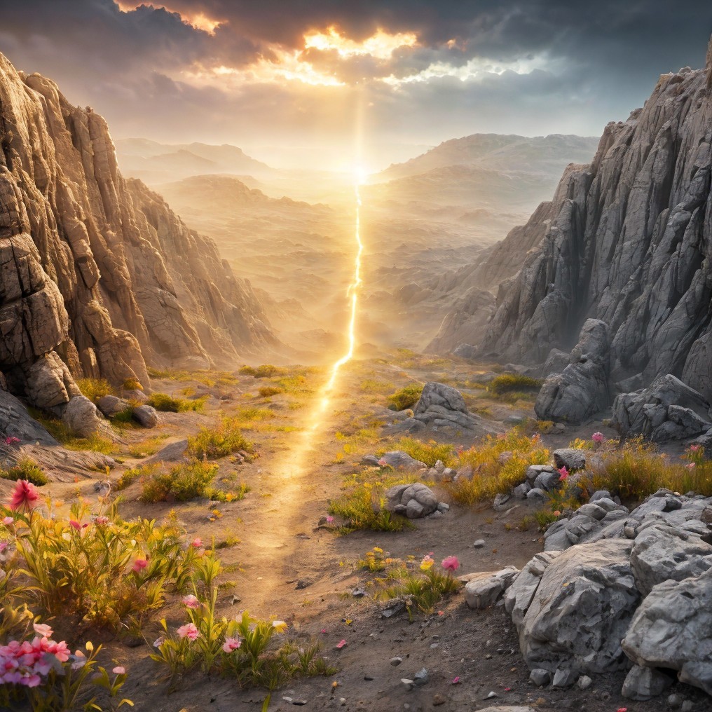 The last soldier to survive a war, walking in a canyon towards a melting Sun, or is it?