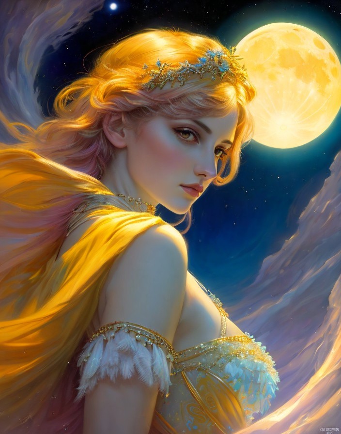Prompt: Anaglyph, Beautiful moonlight goddess, she is all that, Rie Cramer, Mike Dargas, Howard Chandler Christy, Michael Creese, Thomas Ascott. Extremely detailed, intricate, beautiful, high definition