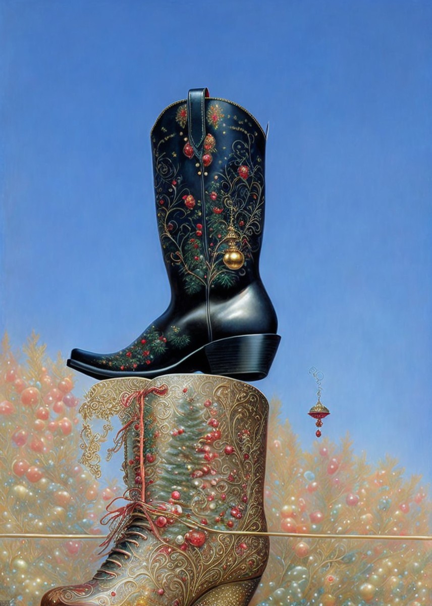 + Prompt:Masterpiece, an insanely beautiful decorated Nikolaus boot with candy shugar with sweets with mistletoe with fir tree flawless complete figure by Monge by Daniel Merriam romantic style
