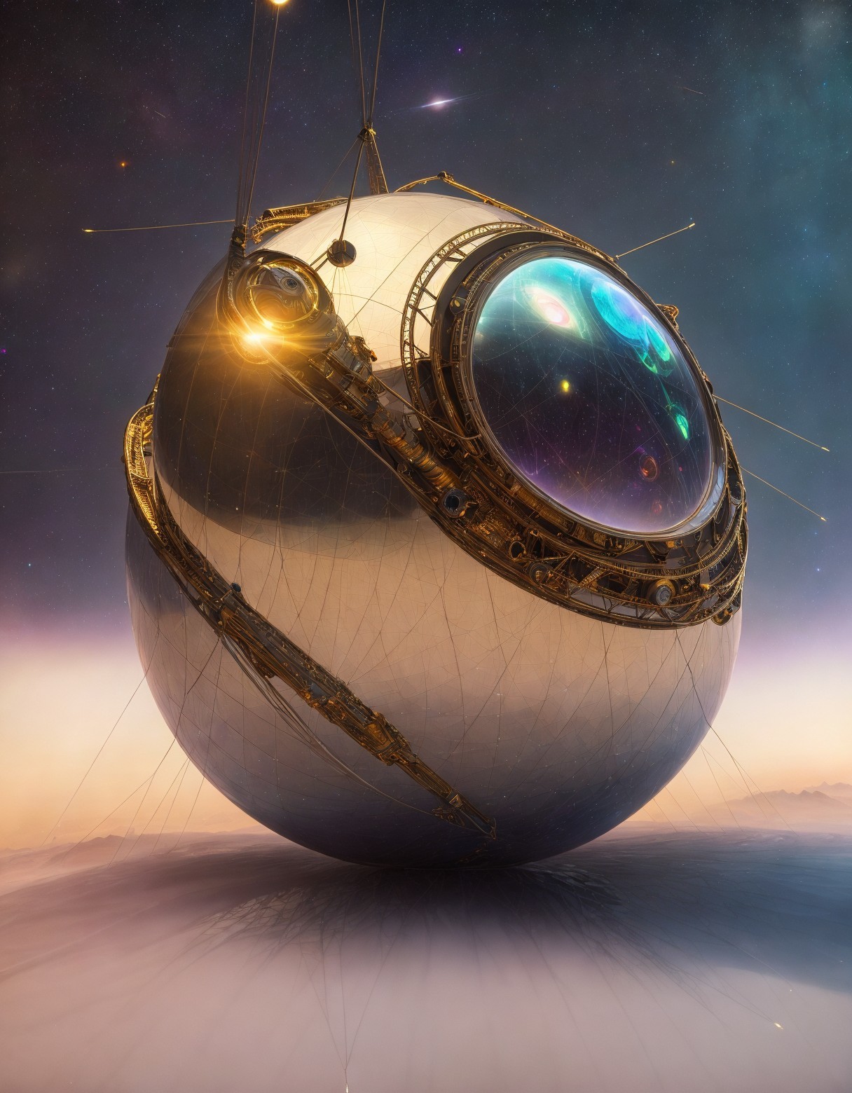 Sleek Metallic Spacecraft on Lunar Landscape with Stars