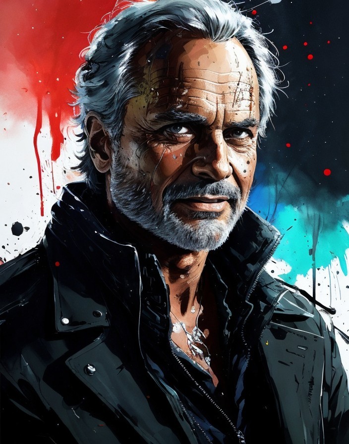 Brad Pitt [Speedpaint with mixed brush strokes size by {Junji Ito; robert oxley! Ismail Inceoglu; Gazelli; M.W. Kaluta}; paint splatter; paint drips; drip painting; a masterpiece; 8k resolution; trending on artstation; maximalist; uncanny; Holi]