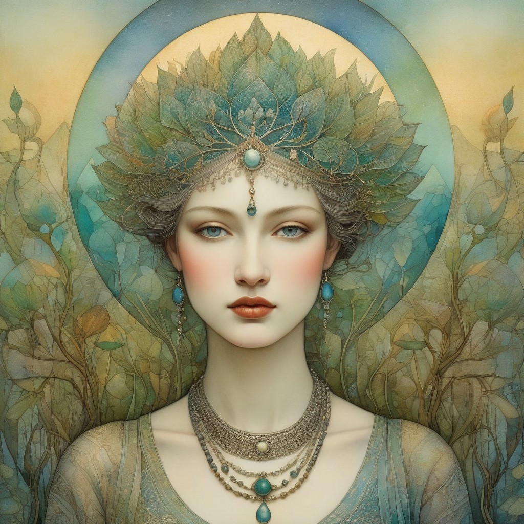 Iridescent watercolor and ink By Jamie Heiden, Daniel Merriam, Paul Klee, Karol Bak, Dee Nickerson, crisp quality, ultra detailed background, anatomically correct, Perfect face,body,"